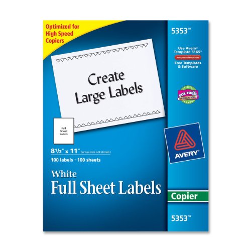 Avery Full Sheet Shipping Labels for Copiers, 8.5 x 11 Inches, White, Box of 100 (05353) description :