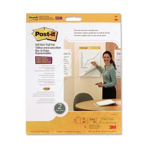 Post-it Wall Pad with Command Strips, 20 x 23-Inches, White, 20-Sheets/Pad, 2-Pads/Pk description :