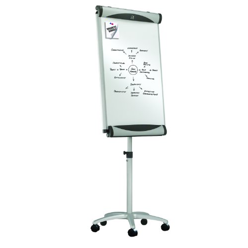 Ultra-durable, ultra-smooth 27-Inch x 41-Inch mobile presentation easel with DuraMax porcelain surface that will not scratch, dent, stain or ghost. Delivers superior performance when collaboration is needed in high-profile, heavy-use office environments. Magnetic surface doubles as bulletin board. Easy-to-clean writing surface requires minimal use of Quartet cleaning solutions. Adjustable hooks and clamp hold standard-sized flipcharts for easy sheet tear-away meeting notes. Smooth-rolling 5-caster star-base wheels lock firmly in place for total control and mobility. Flexible spring-lo